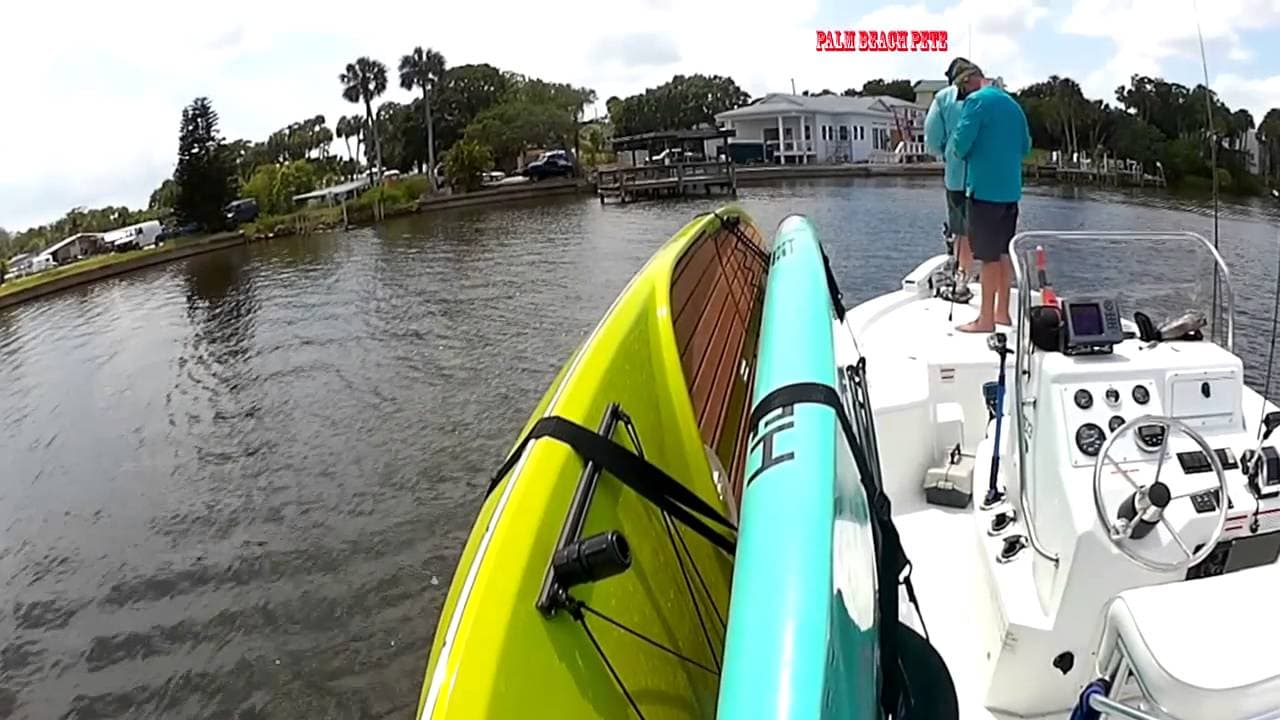 In our case, we mothership on our boat to shallow waters and then take paddleboards to the waters that the boat cannot get to because that’s where the fish are hanging out. Click the link below to see the full video of how you can Mothership your paddleboards and kayaks this year. Mothership Paddleboards and Kayaks with Palm Beach Pete