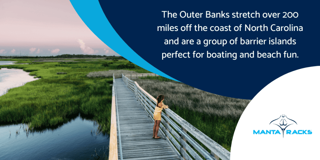 The Outer Banks is a popular spot for boating and beach adventures, offering sandbars for relaxation and exploration.