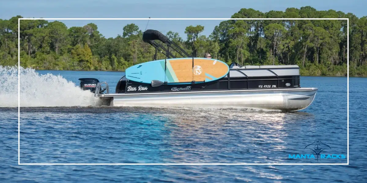 We also make pontoon-specific racks, like our PS1 Paddleboard Rack and our PFM Pontoon Floating Mat Storage Rack, which are perfect for those Midwest lake days where you’re tying up, hanging out, and hopping in and out of the water all afternoon.
